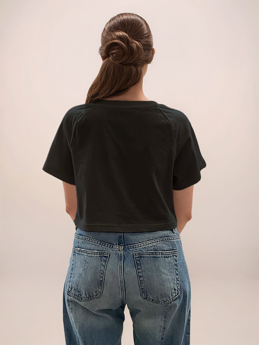 Black & Baby Pink Floral Print Ruffled Sleeves Top