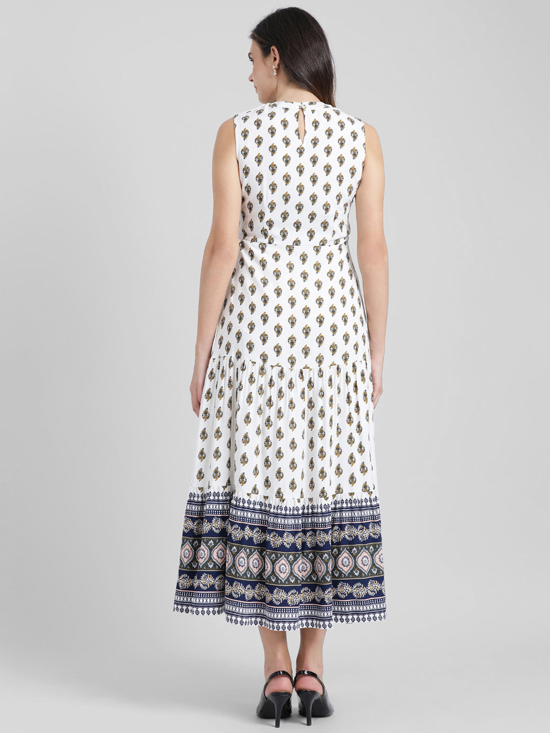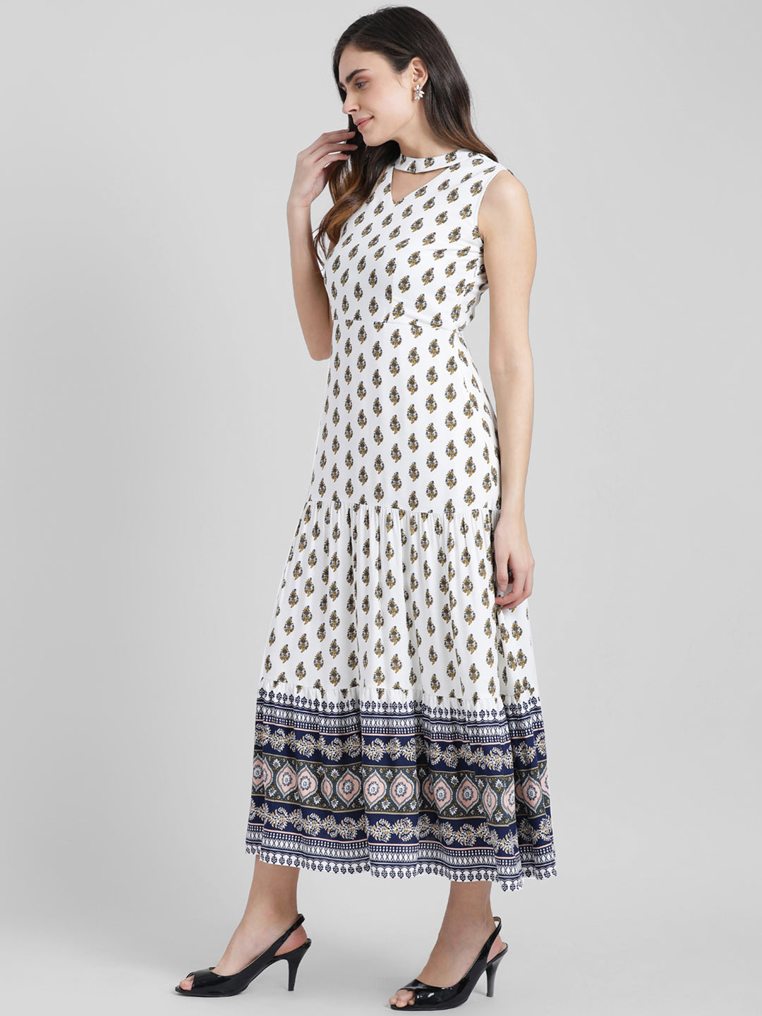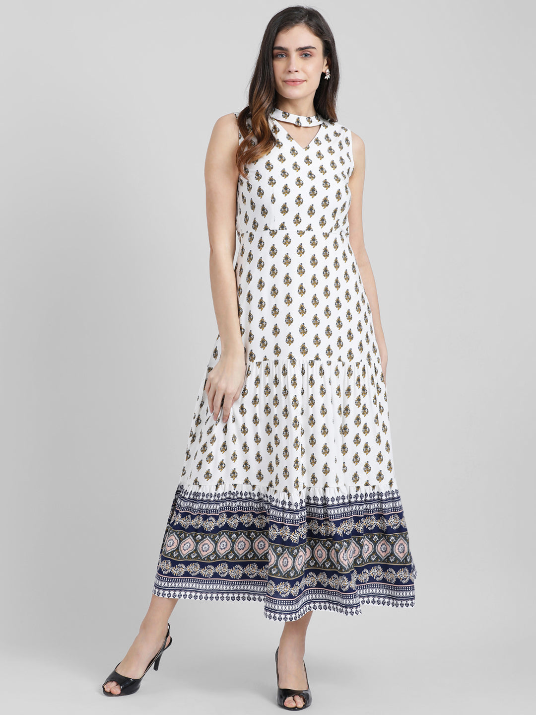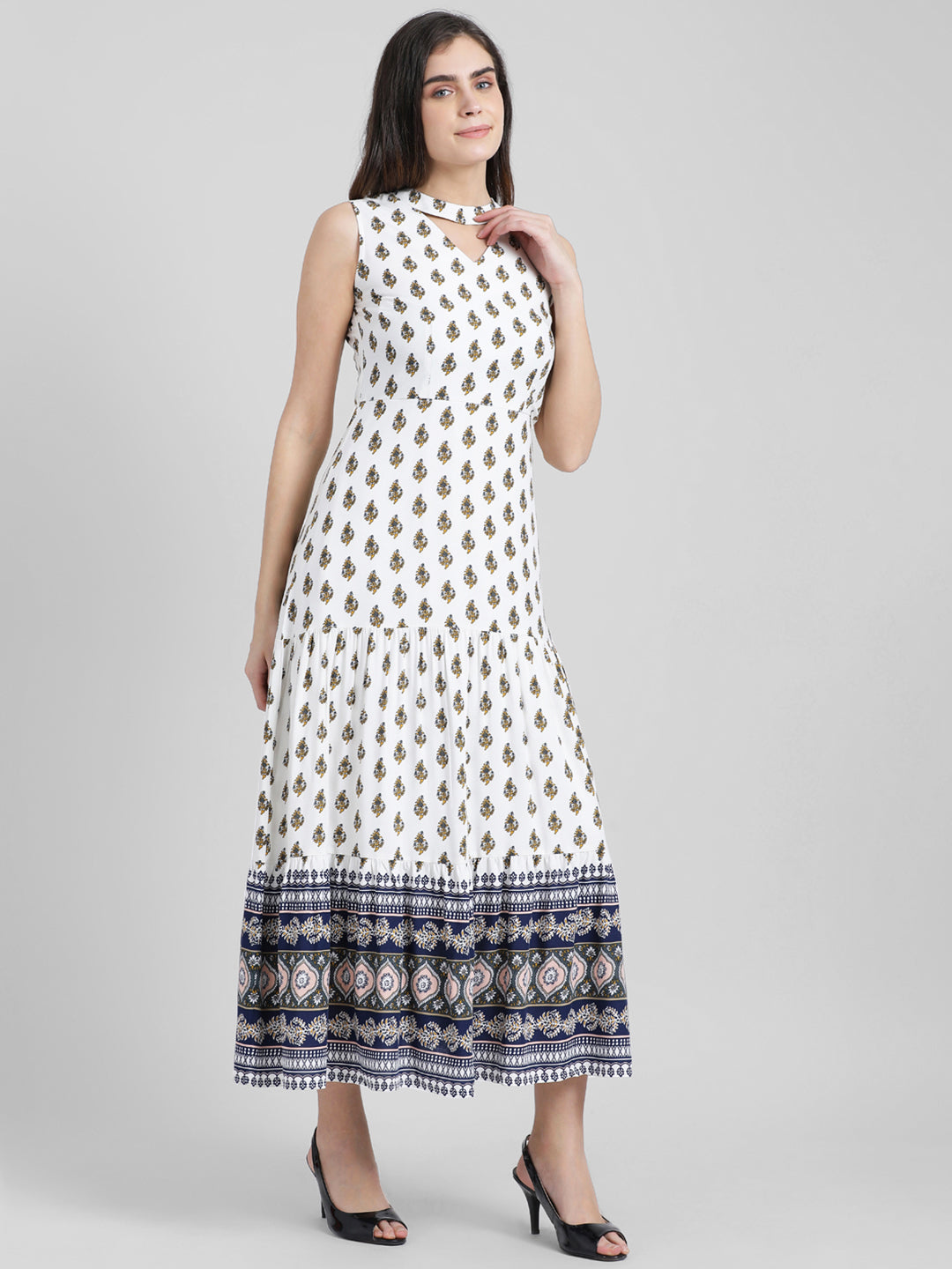 - Description : White Printed Maxi Dress
