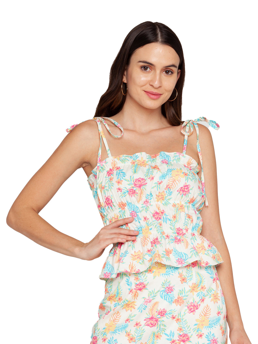 Multi-Colored Tropical Print 3/4th Sleeves Top