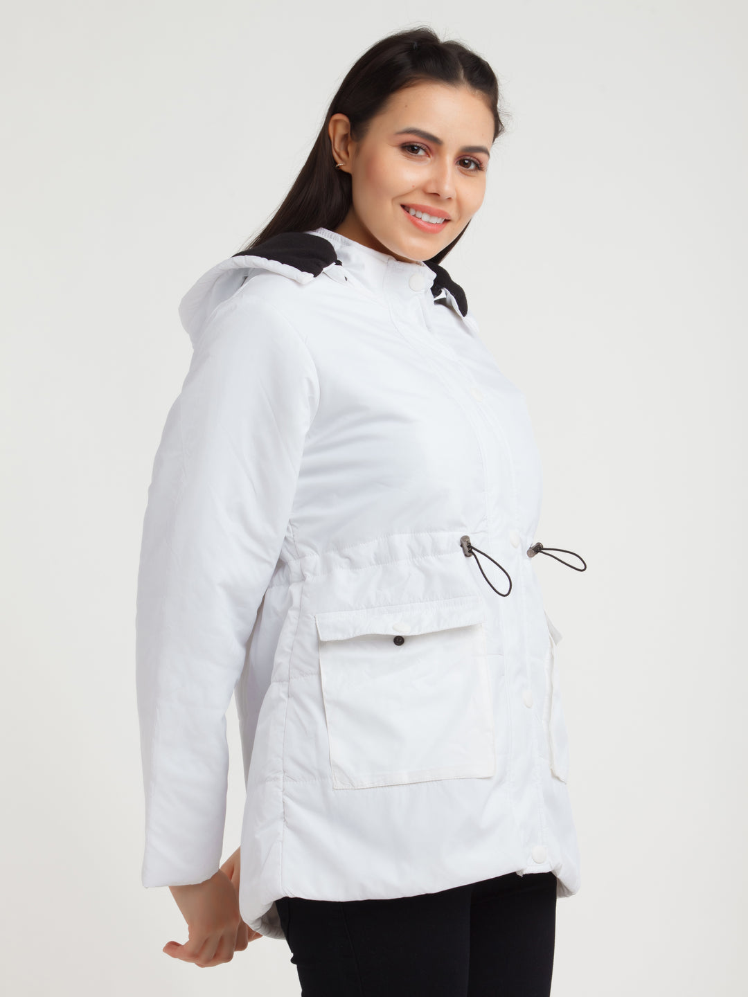 - Description : White Solid Jacket For Women