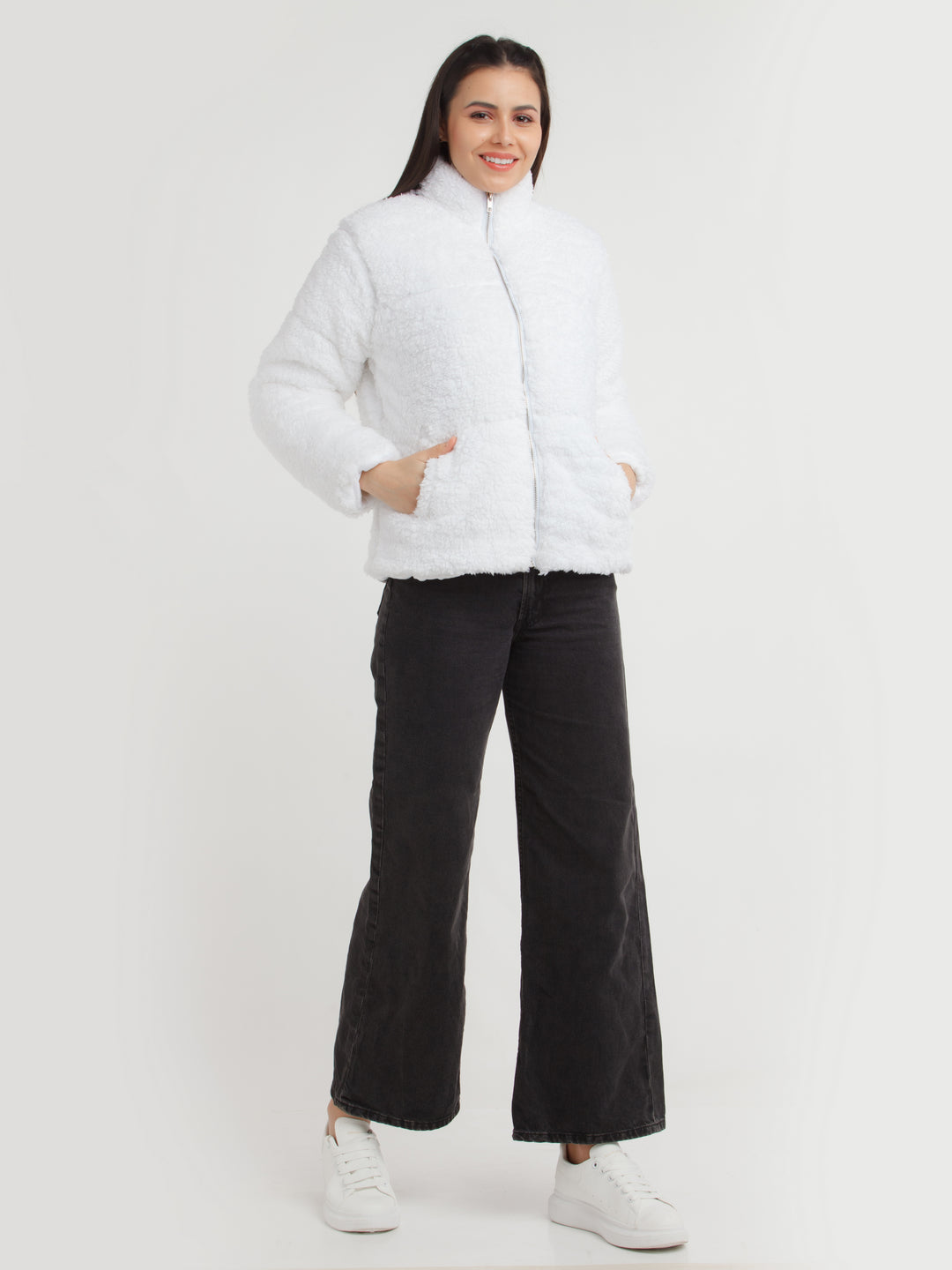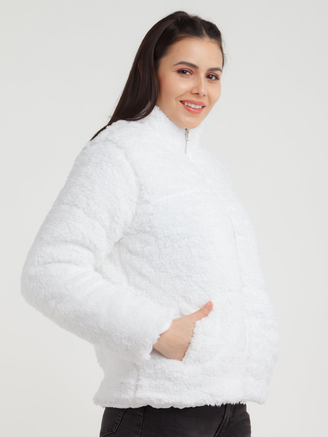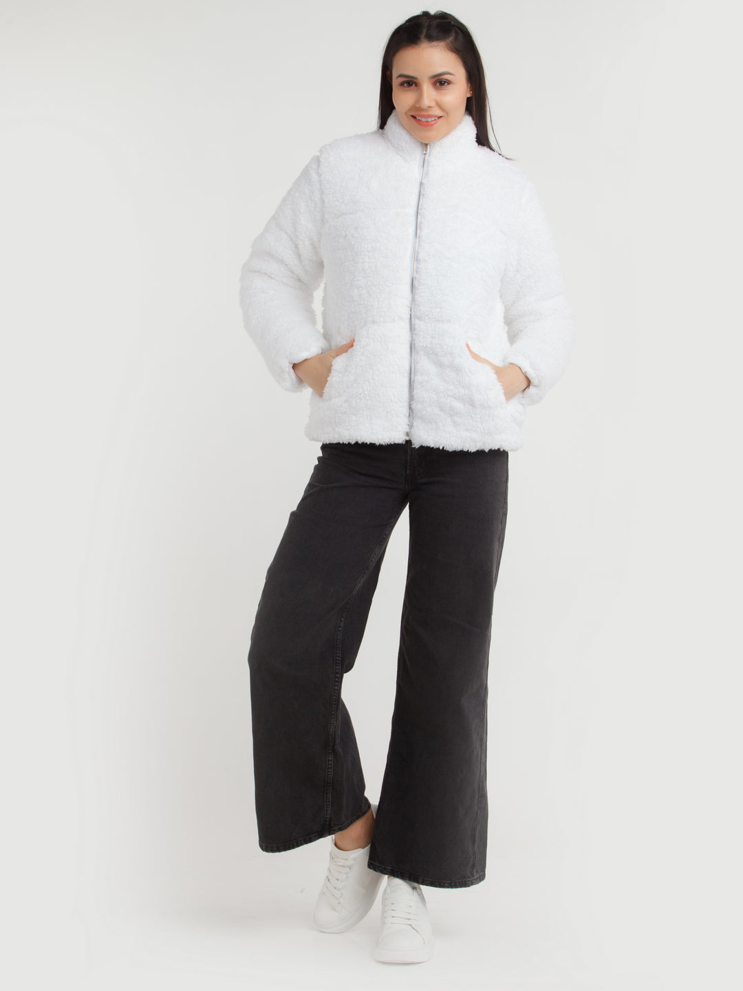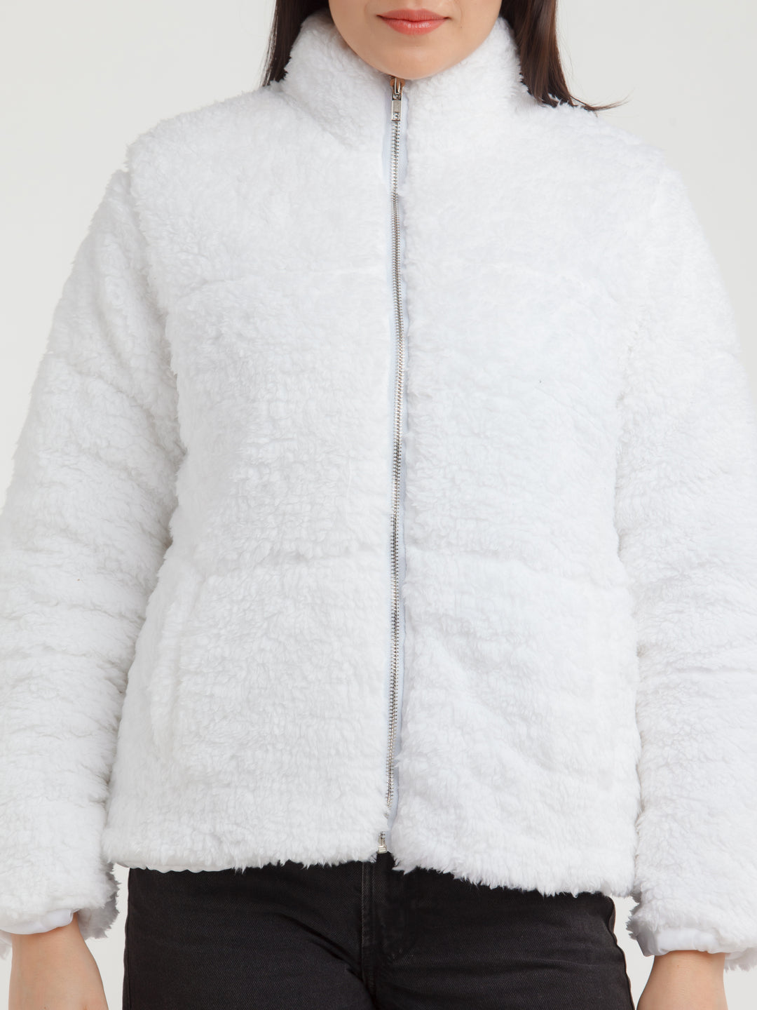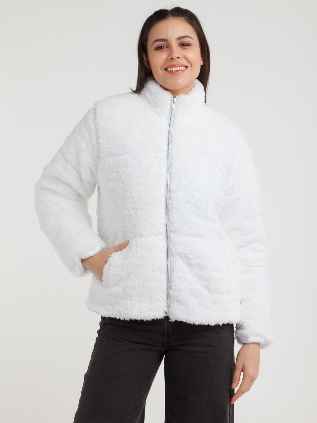 - Description : White Solid Jacket For Women