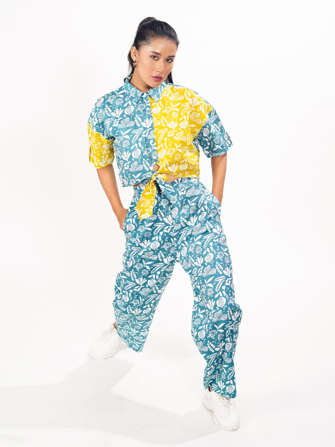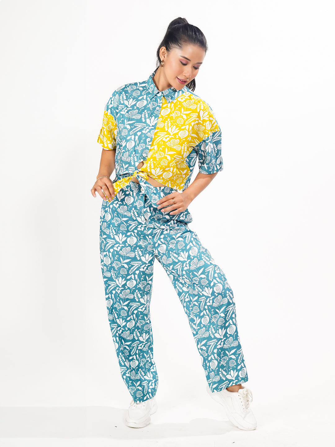 Multi-Colored Tropical Print Long Sleeves Shirt