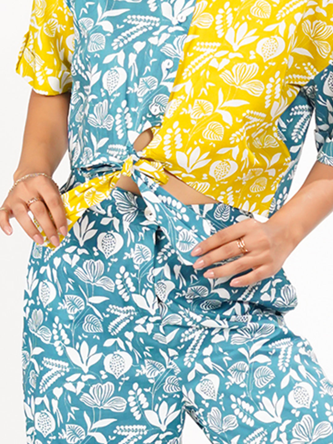 Multi-Colored Tropical Print 3/4th Sleeves Top